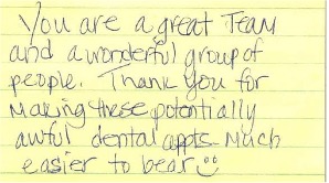 “Thank you for making these potentially awful dental appointments much easier to bear.”